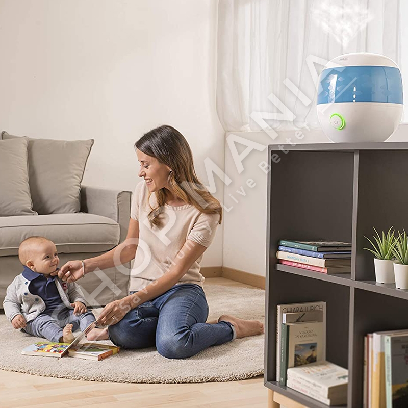 Lageshtuesi i ajrit Humi Hot Advance ndihmon ne vendosjen e lageshtires se dhomes ne nivelin e duhur, ideale per virozat e stines.