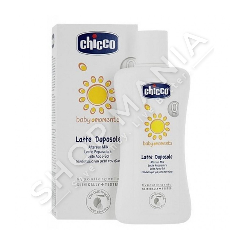 Locion hidratues per femije, nga Chicco, per t’u aplikuar pas ekspozimit ne diell.