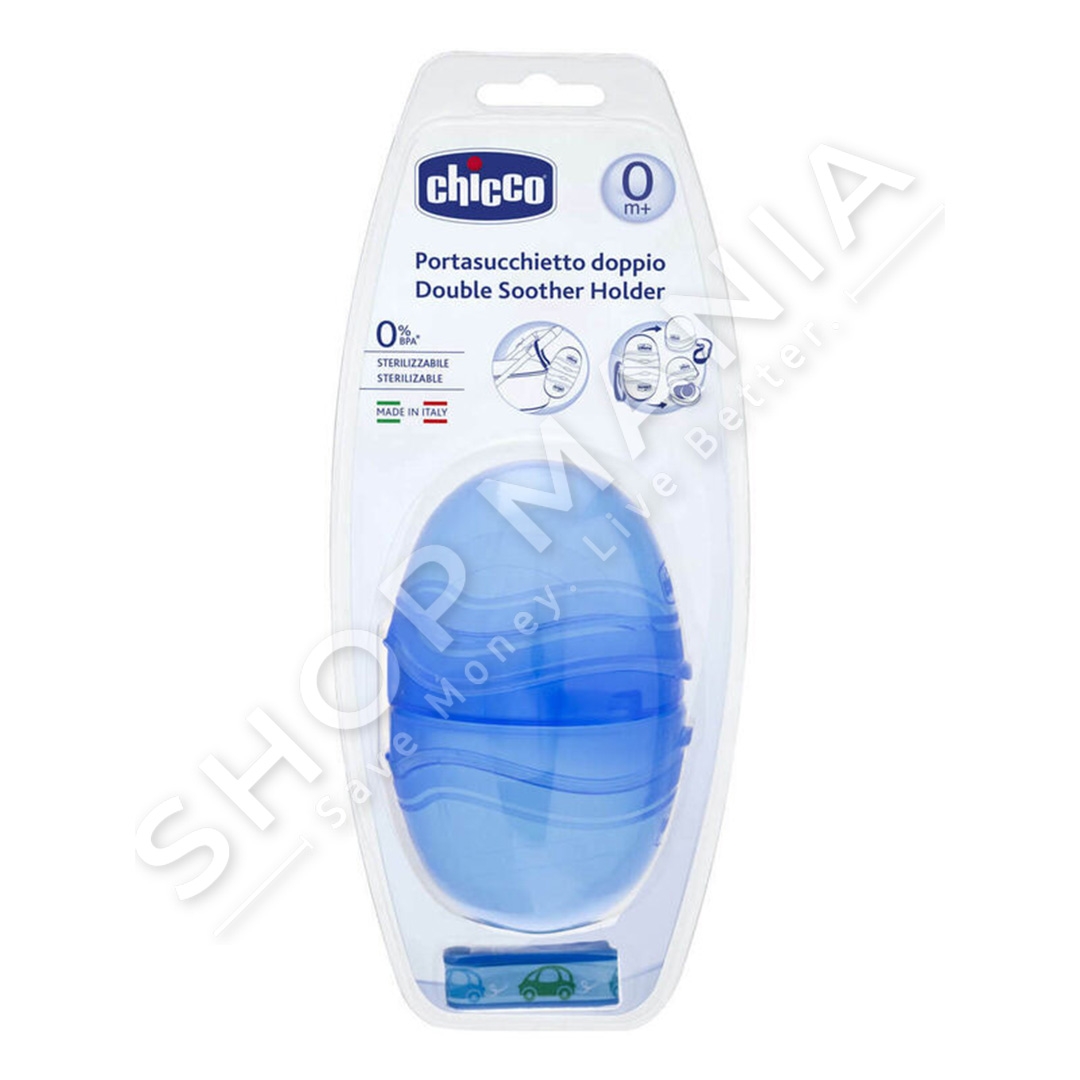 Përshkrimi:Mbajtese biberoni e dyfishte "Chicco - Double Soother Holder Blue".