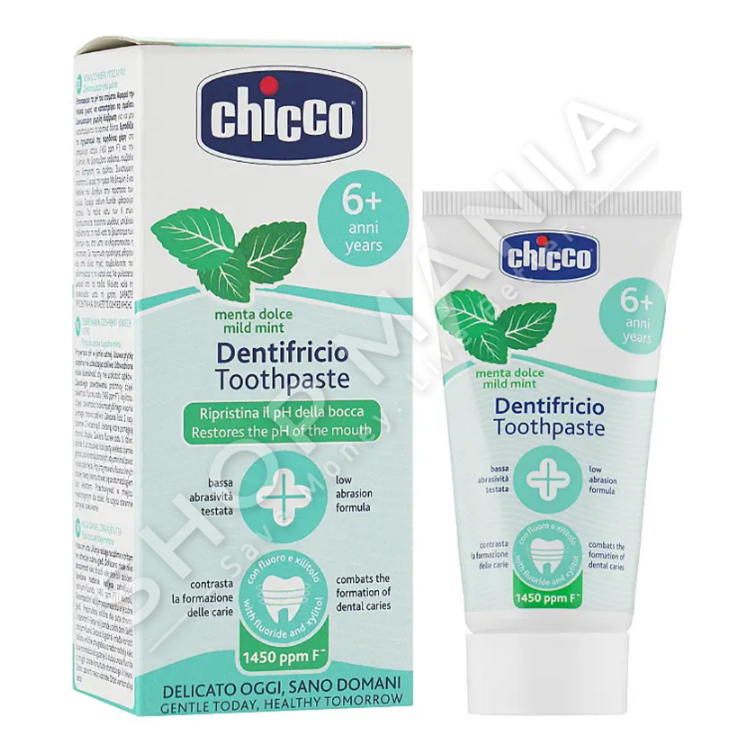 Përshkrimi:Paste dhembesh "Chicco - Toothpaste Mild Mint Fluorine" ideale per femijet +6 vjec.
