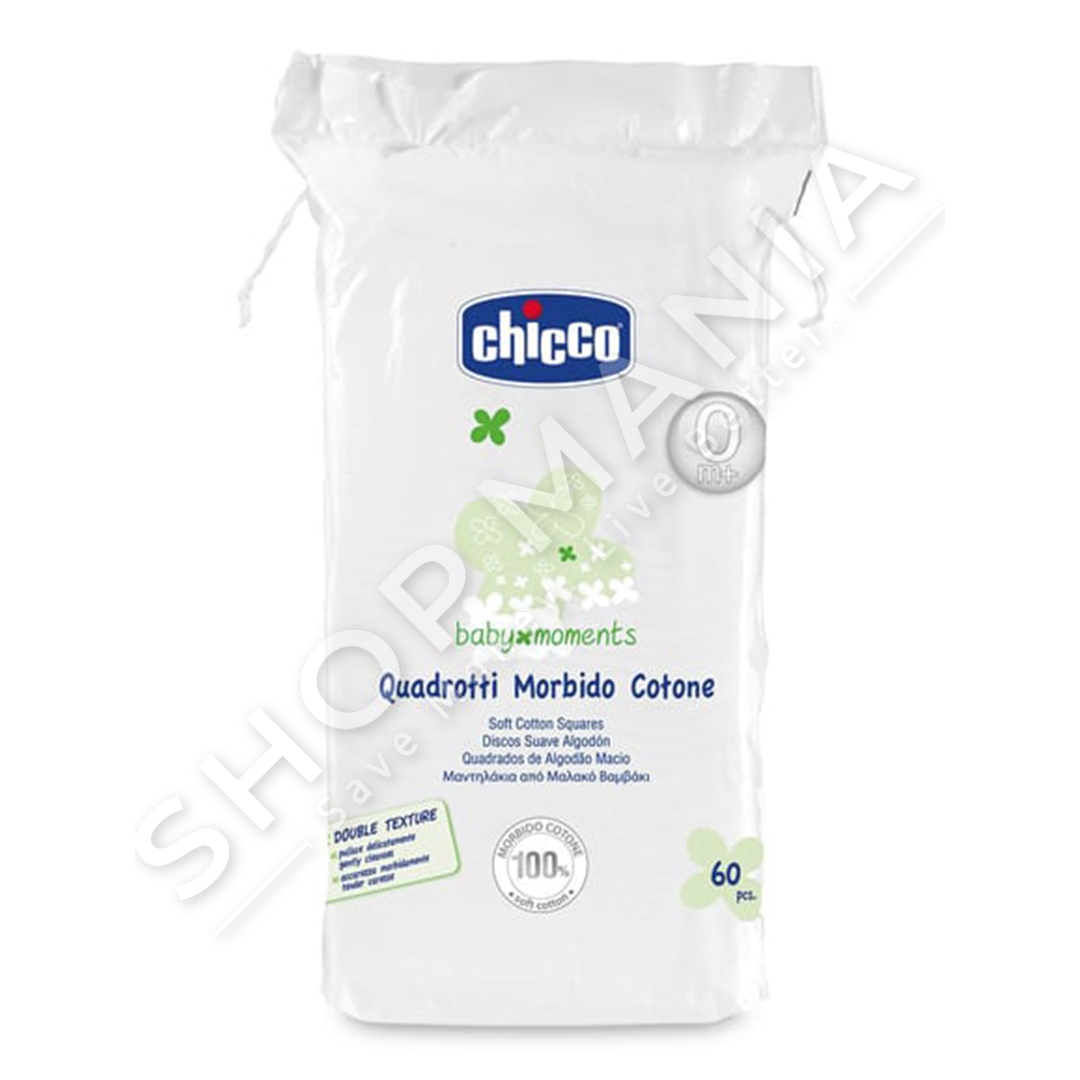 Përshkrimi:Peceta pambuku "Chicco - Baby Moments Soft Cotton Squares" ne nje paketim prej 60 copesh.