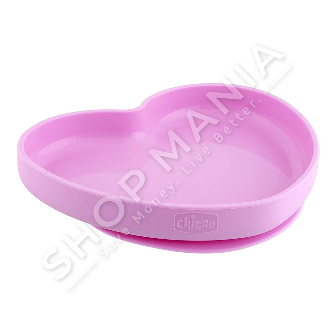 Përshkrimi: Qe vogelushet ta shijojne kohen e ushqimit dhe mos te merziten, ju nevojitet pjata ne forme zemre "Chicco - Silicone Plate Eat Easy Heart Shaped".