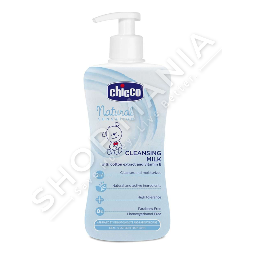Përshkrimi: Qumesht pastrues "Chicco - Cleansing Milk Natural Sensation" pastron zona te ndryshme te trupit (fytyre, duar, zone intime) duke respektuar delikatesen e lekures, pa shpelarje.