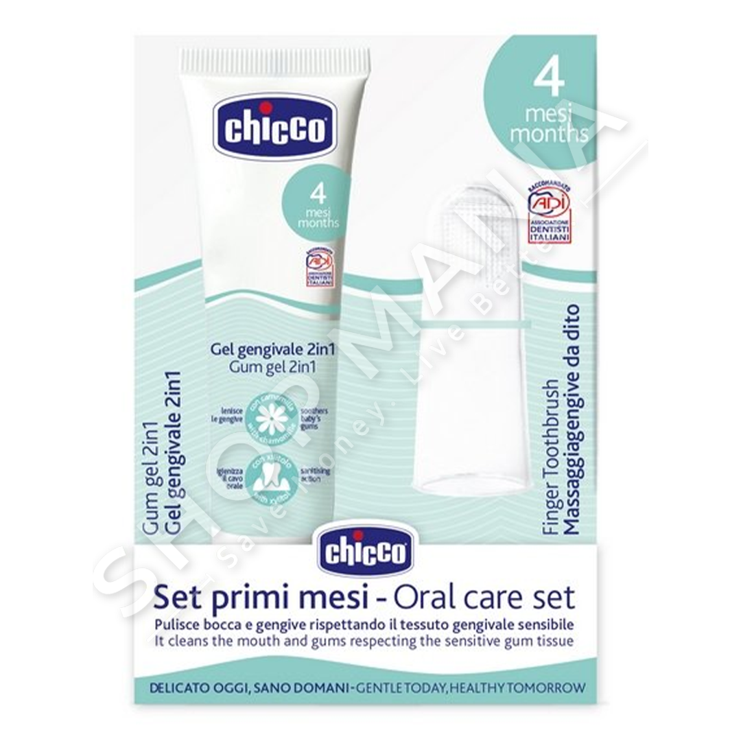 Përshkrimi:Set higjiene orale "Chicco Oral Care Set" permban xhelin e dhembeve dhe furcen e dhembeve per gisht.