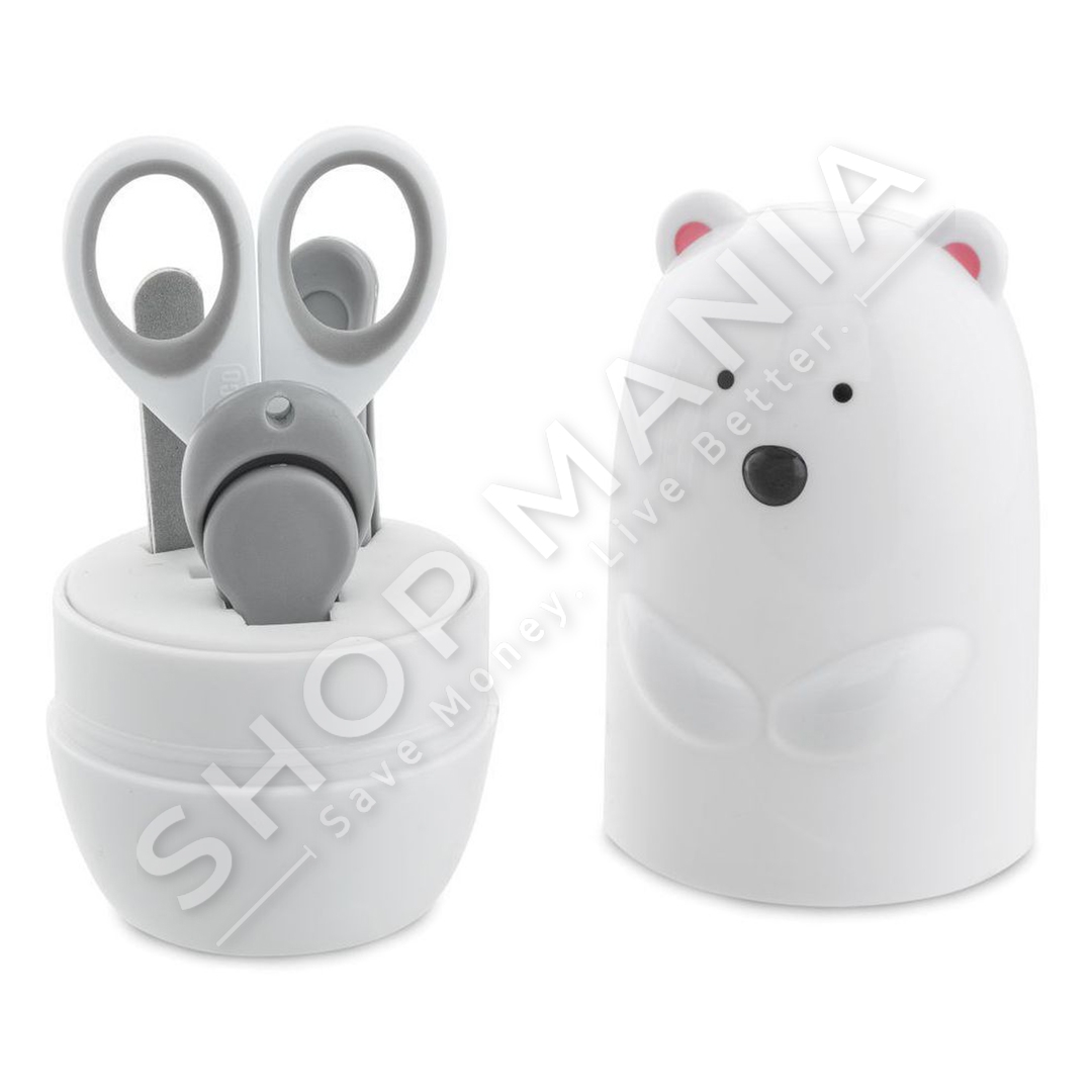 Përshkrimi: Set manikyri per femije "Chicco - Baby Manicure Set Polar Bear". Seti perfshin 1 gershere me teh te lakuar dhe maje te rrumbullakosur, 1 gershere thonjsh, 2 lima thonjsh dhe 1 piskatore.