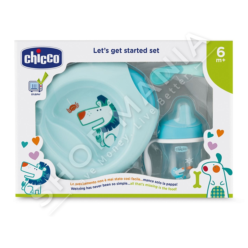 CHICCO - SET USHQYERJE BOJEQIELLI PER BEBE (PJATE, LUGE, GOTE) +6 MUAJ