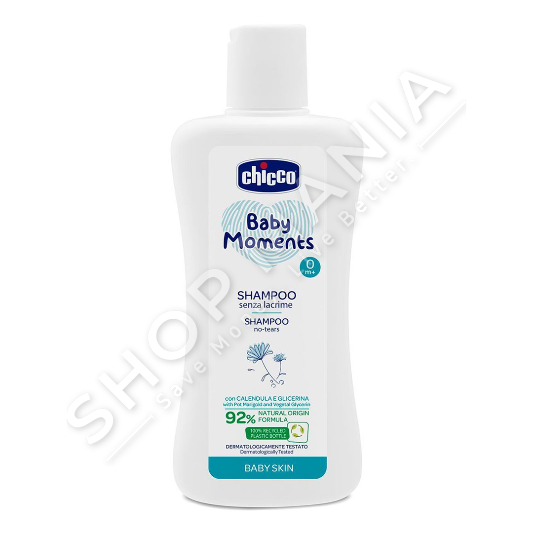 Përshkrimi:Shampo trupi "Chicco - Baby Moments Shampoo No Tears" pastron butesisht lekuren e foshnjes duke e lene ate me arome te kendshme.
