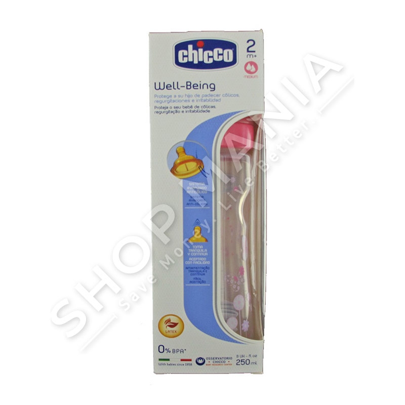 Shishja me biberon gome nga Chicco e linjes Wellbeing, eshte e perdorshme pas muajit te 2 te jetes se femijes.