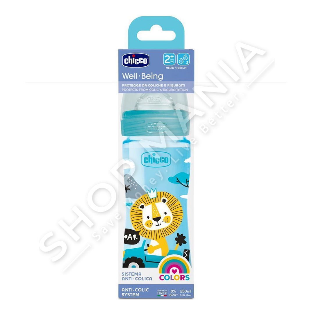 CHICCO - SHISHE ME BIBERON SILIKONI 250ML/+2MUAJSH "FEEDING BOTTLE WELL BEING" - 8058664129478