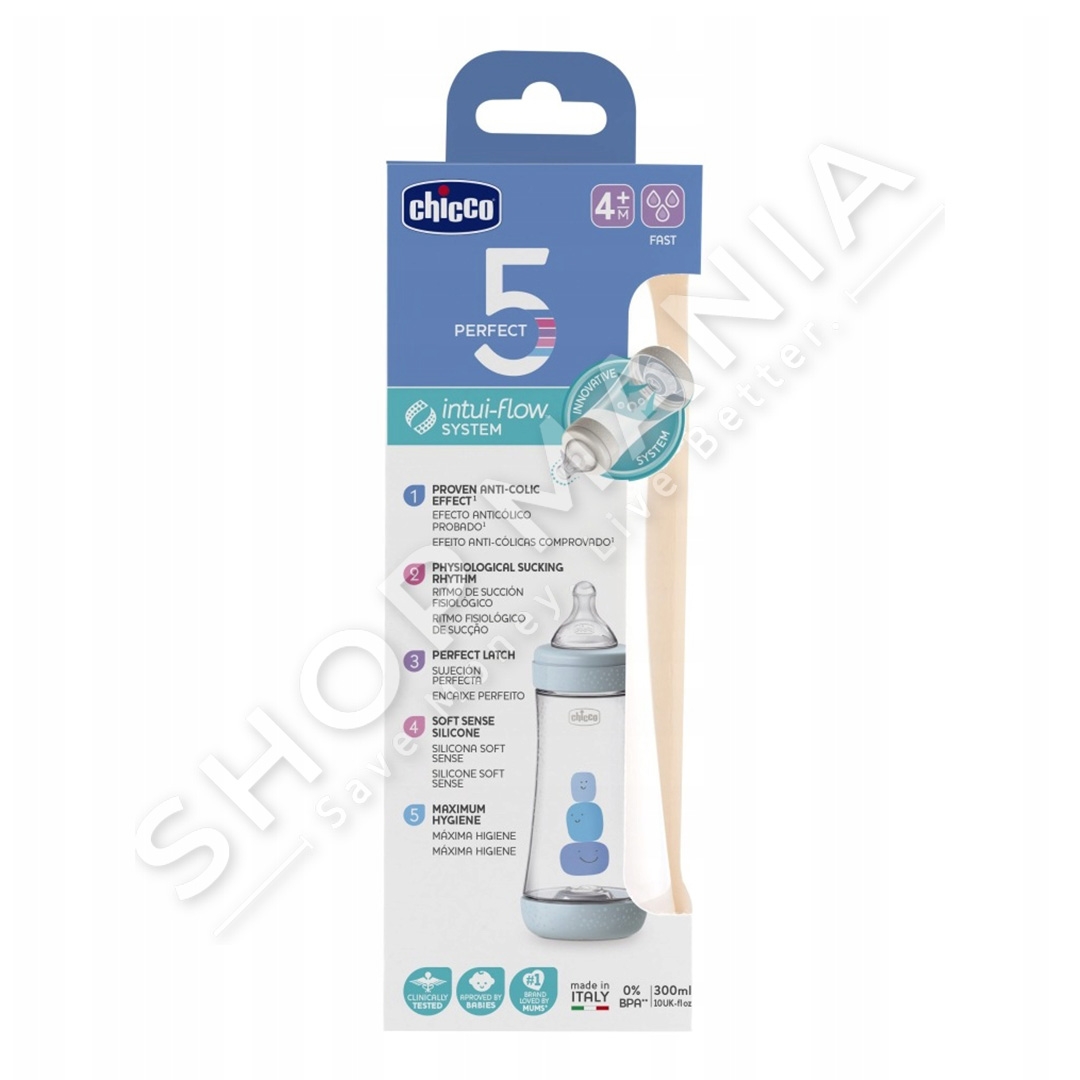 CHICCO - SHISHE ME BIBERON SILIKONI 300ML/+4MUAJSH "FEEDING BOTTLE PERFECT 5 FOR BOY FAST FLOW" - 8058664122127