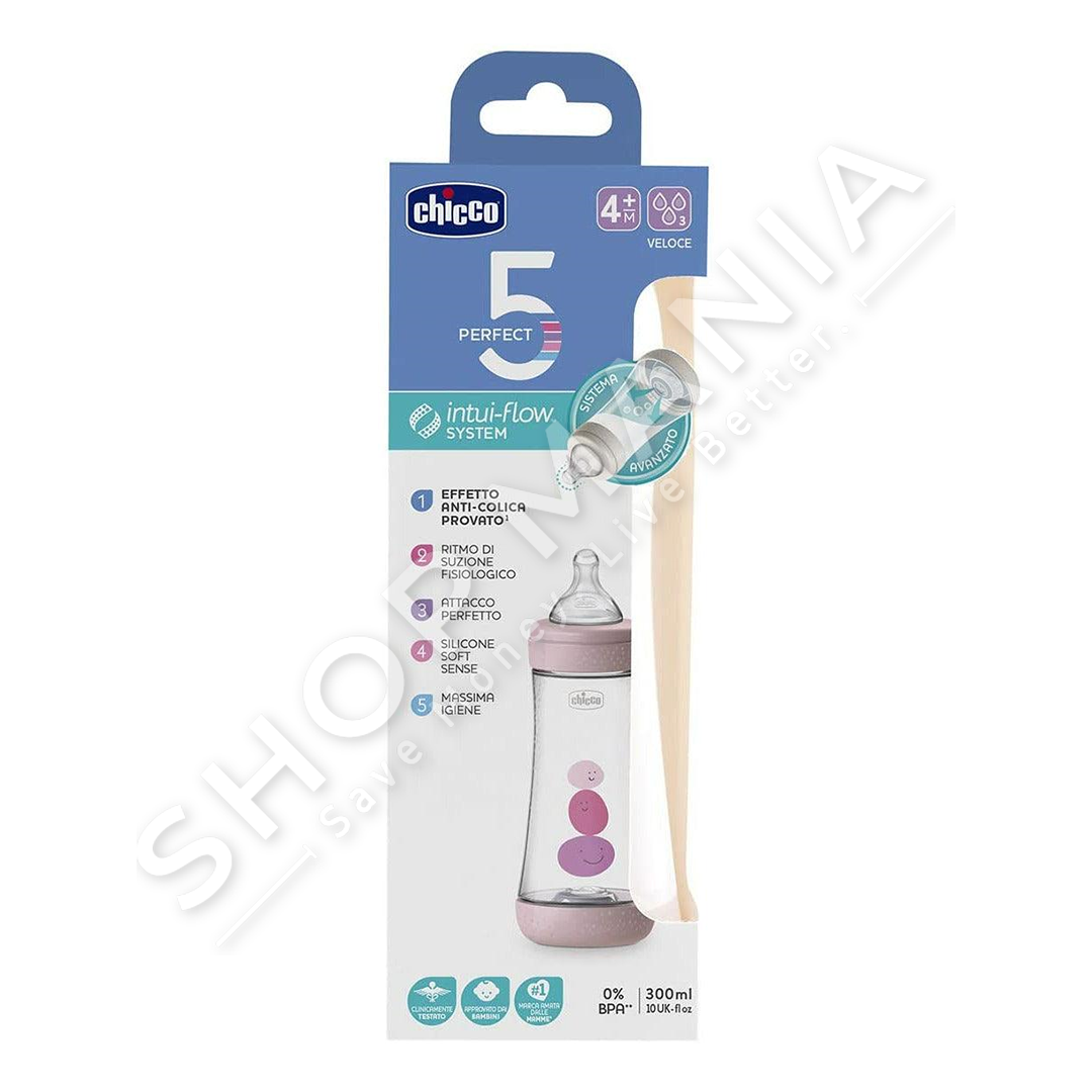 Përshkrimi: Shpesh here foshnjat kane nevoje per nje ndihme extra gjate ushqyerjes, ndaj per me shume lehtesi ju nevojitet shishja me biberon silikoni "Chicco Feeding Bottle Perfect 5 Fast Flow".