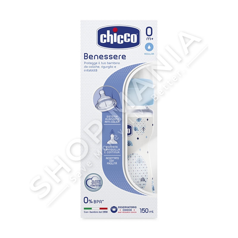 CHICCO - SHISHE ME BIBERON SILIKONI KUNDER KOLIKAVE PER DJEM "WELL-BEING" - 150ML, +0 MUAJ
