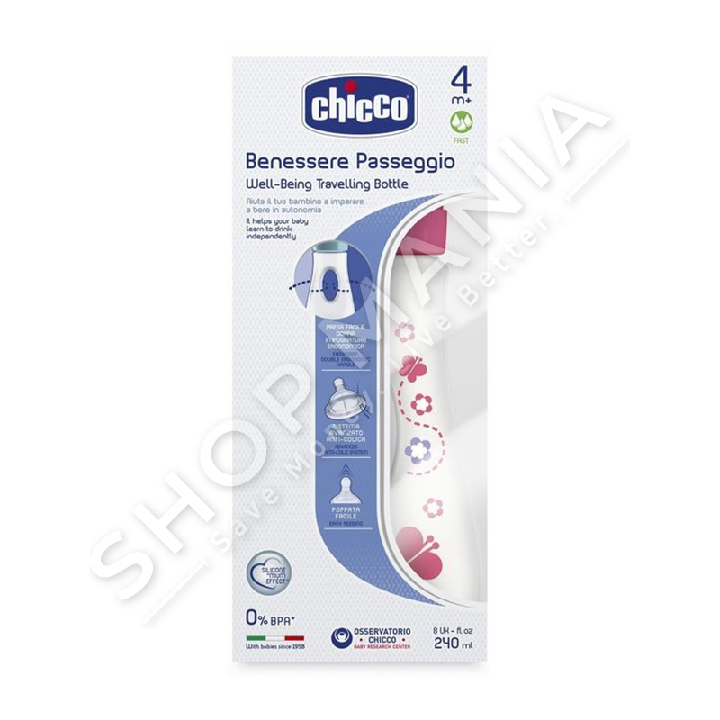 CHICCO - SHISHE ME BIBERON SILIKONI PER VAJZA "TRAVELLING" -240ML, +4 MUAJ