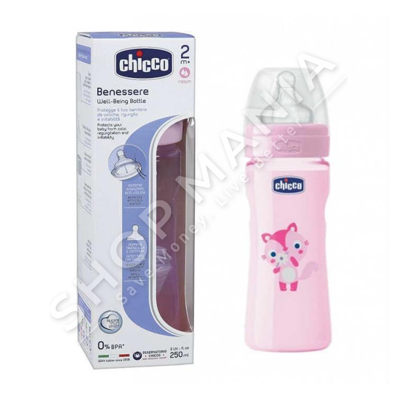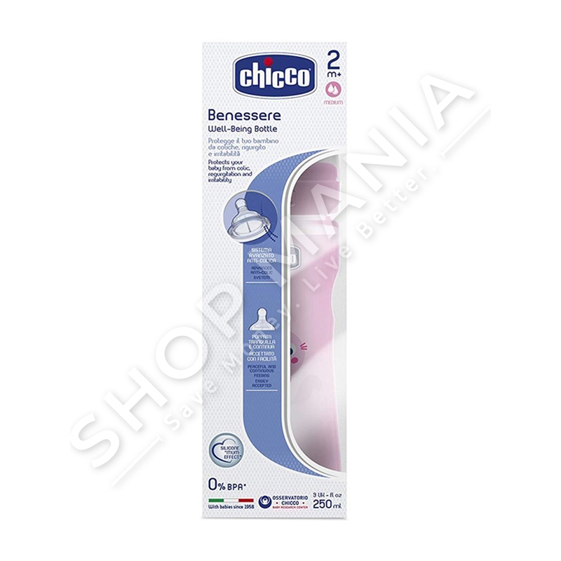 CHICCO - SHISHE ME BIBERON SILIKONI PER VAJZA "WELL-BEING" - 250ML, +2 MUAJ
