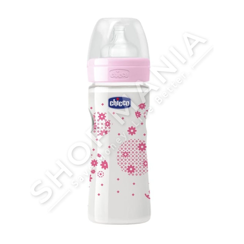 CHICCO - SHISHE ME BIBERON SILIKONI PER VAJZA "WELL-BEING" - 330ML, +4 MUAJ