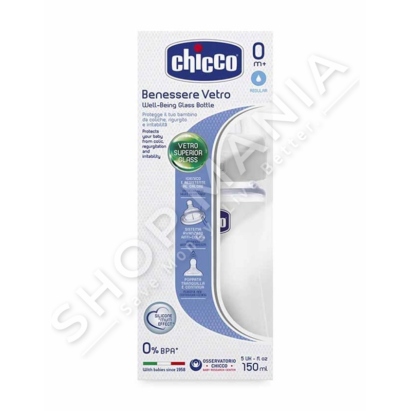 Shishja e Chicco, e linjes Well-Being me mase 150ml eshte krijuar nga material i cilesise superiore nga qelq borosilikati.