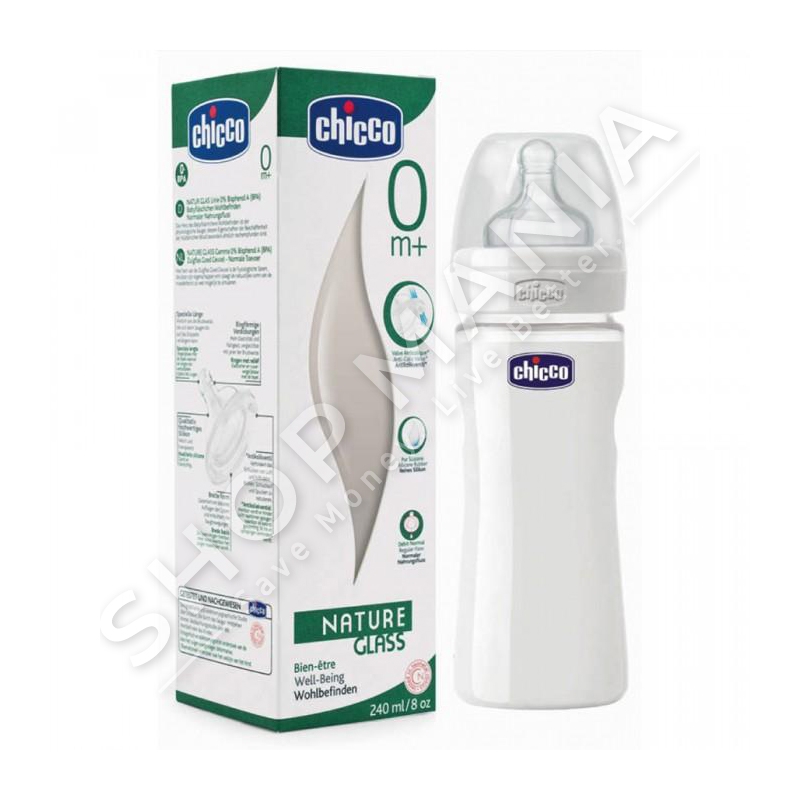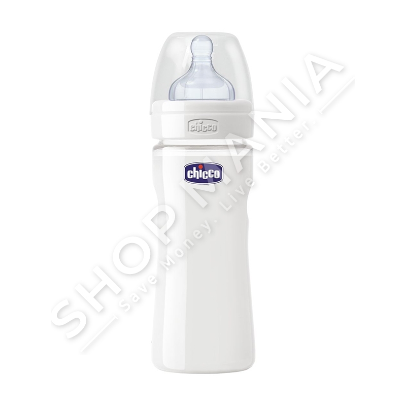 Shishja e Chicco, e linjes Wellnes me mase 240ml eshte krijuar nga material i cilesise superiore nga qelq borosilikati.