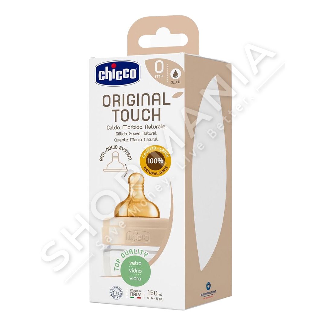 CHICCO - SHISHE QELQI ME BIBERON SILIKONI 150ML/+0MUAJSH "FEEDING BOTTLE ORIGINAL TOUCH SLOW" - 8058664121830