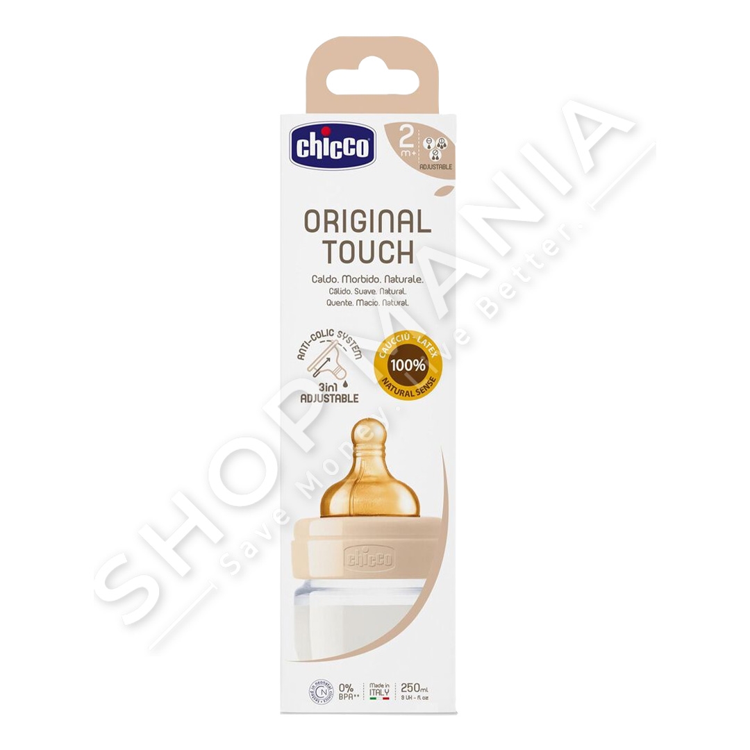 CHICCO - SHISHE QELQI ME BIBERON SILIKONI 250ML/+2MUAJSH "FEEDING BOTTLE ORIGINAL TOUCH" - 8058664121793