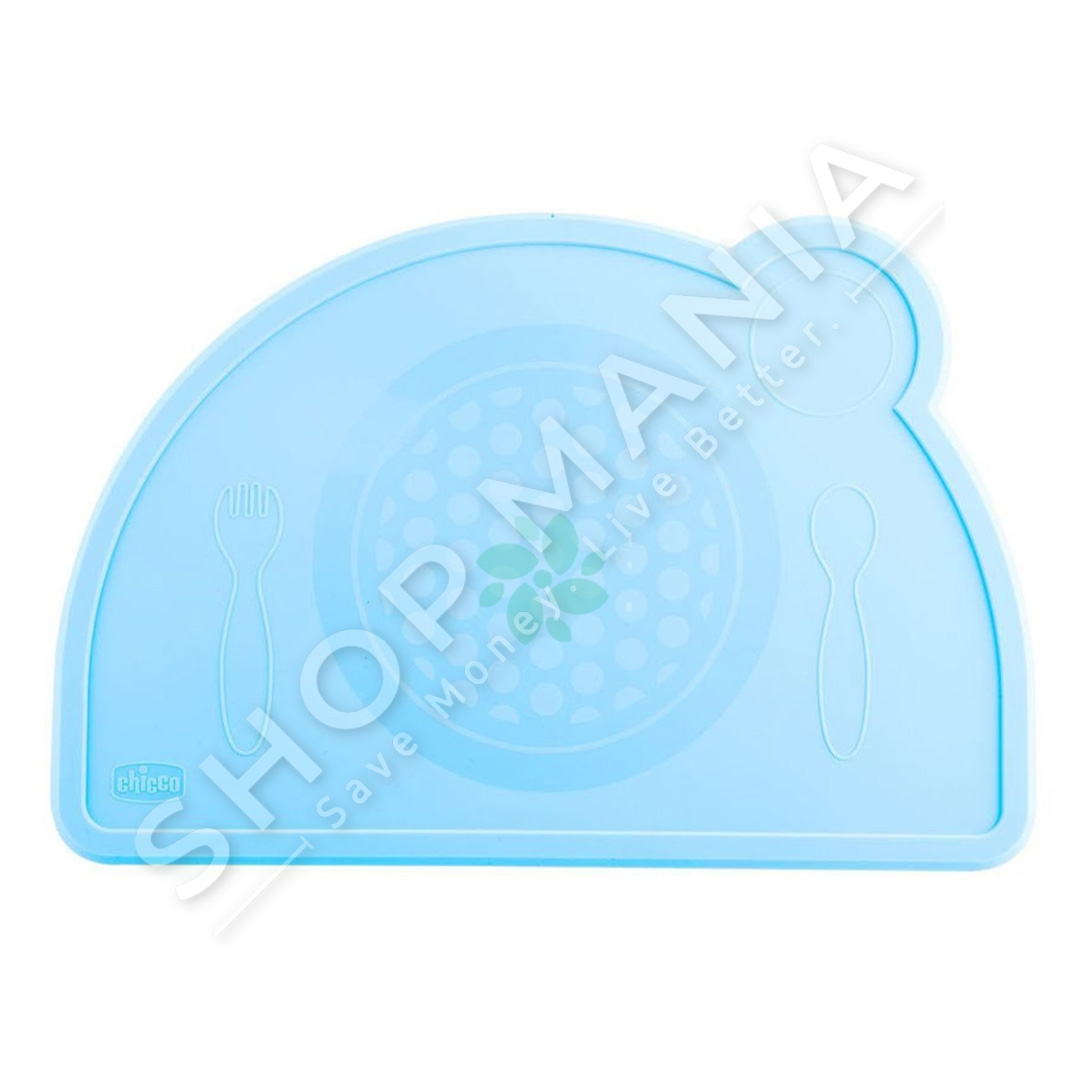 Përshkrimi:Tabaka silikoni "Chicco - Silicone place Mat Blue Eat Easy" qe nuk rreshqet dhe parandalon rreshqitjen e filxhanit, pjates dhe eneve te tjera.