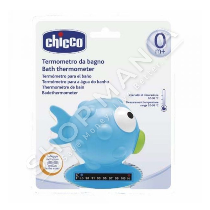 Termometer per ujin e banjos se bebes, ne forme peshku me ngjyre blu, qendron mbi uje dhe eshte termometri praktik qe ju kishte munguar per te qene te sigurta.