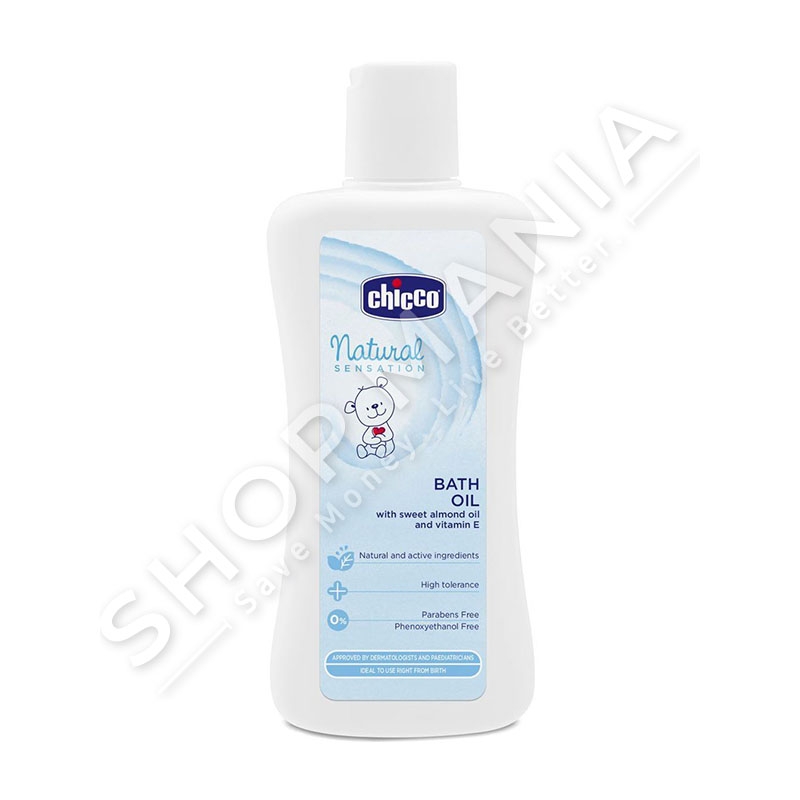 Vaji i trupit Chicco, me vaj bajame te embel dhe vitamine E i pershtatshem qe pas banjos se pare te bebit, per t'i dhene hidratimin lekures.