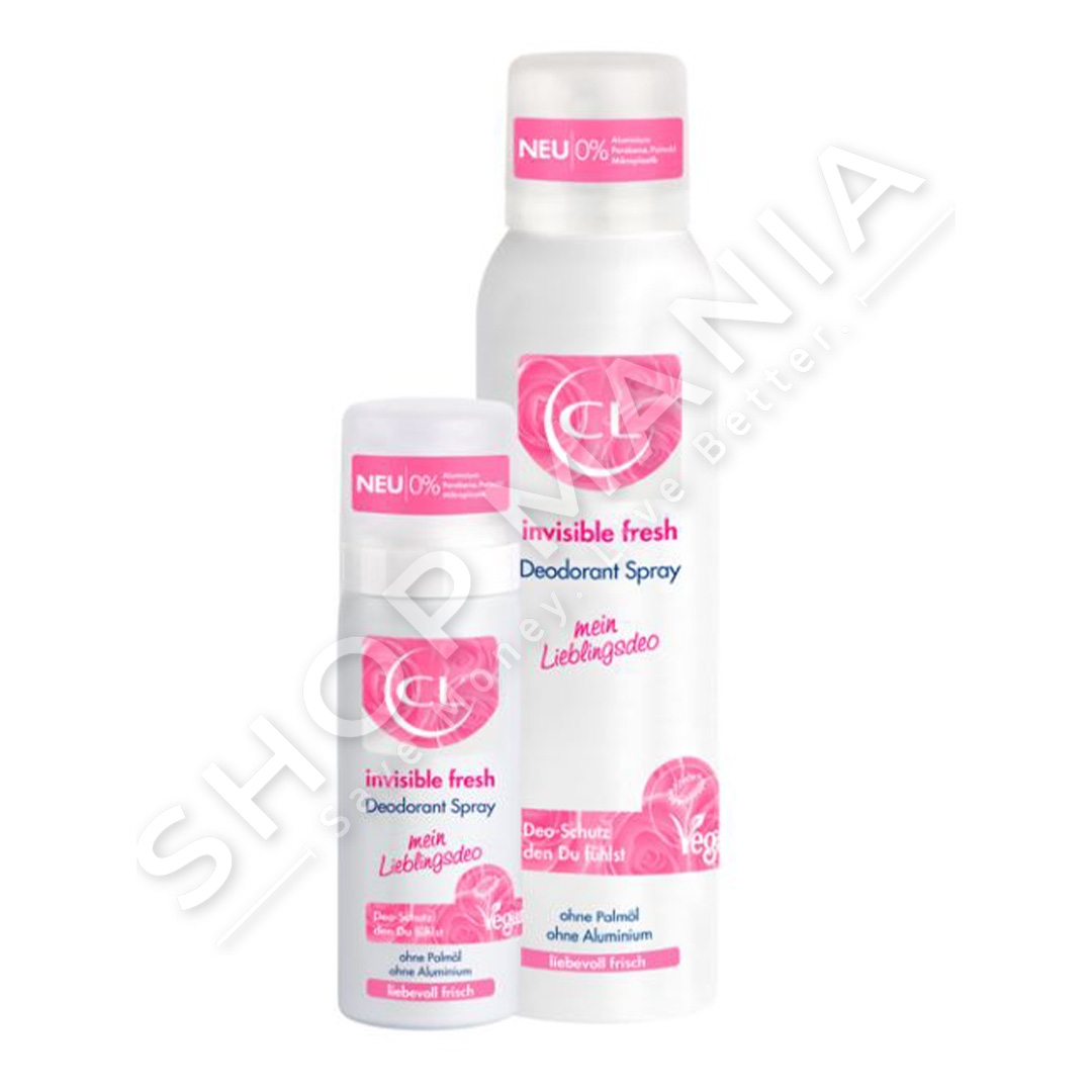 Deodorant CL Invisible Fresh Spray Mini i bazuar ne alkoolin vegjetal me veti antibakteriale dhe antioksiduese.