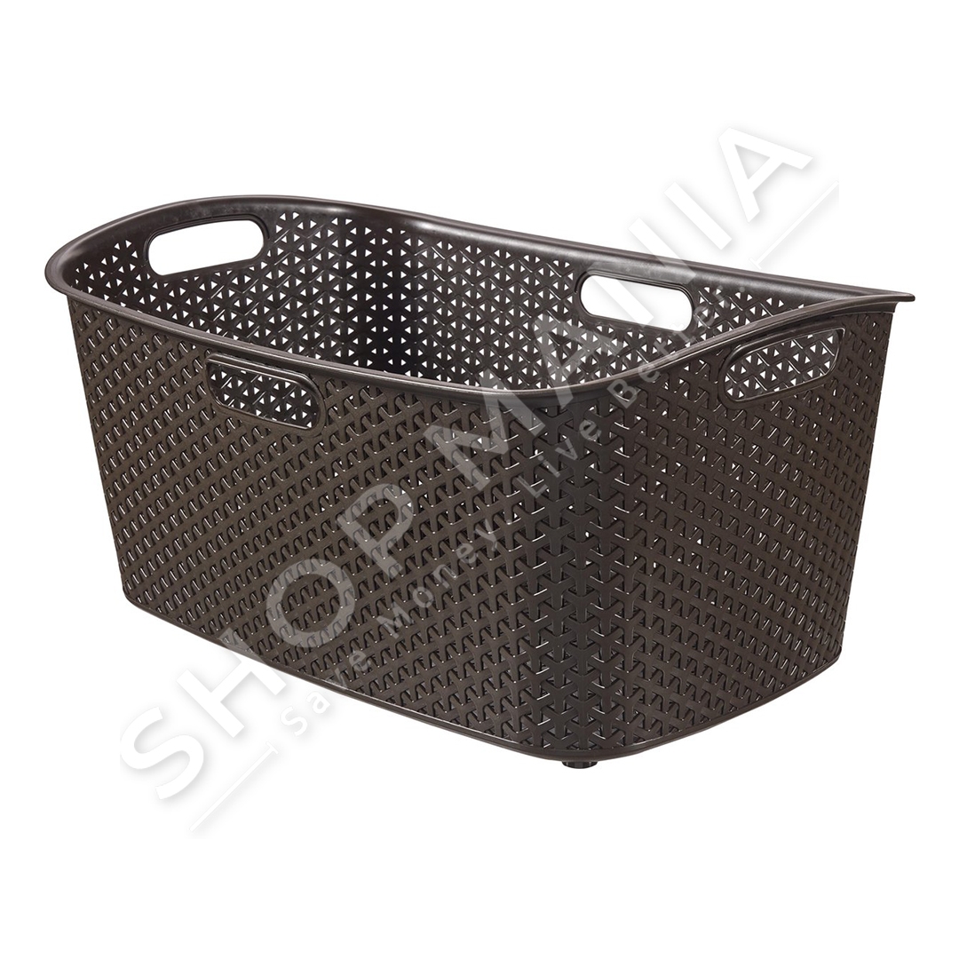 Specifikat:Materiali: PlastikMe dizajn me thurjePermasat: 600 x 390 x 280 mmKapaciteti: 47 LNgjyra: Kafe/Dark Brown