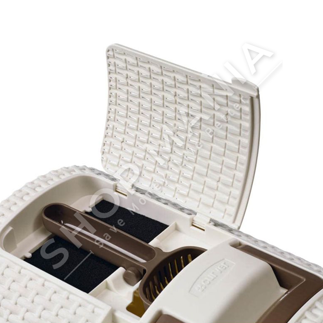 E pajisur me filter karboni qe parandalon daljen e aromave te keqija dhe me tapet qe pastron kembet e kafshes nga papastertite.