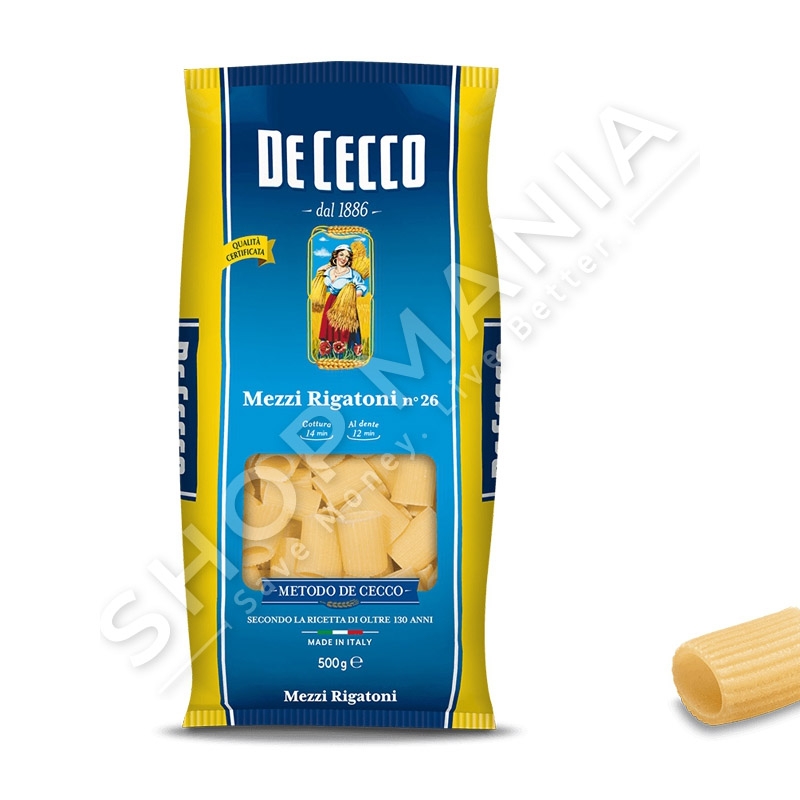 Pergatitur sipas metodes tradicionale De Cecco, 125 vjecare.Lloj miellit: semolina 100%.Varieteti me i mire i miellit italian dhe atij amerikan.Pa OMGJ.Thare ne temperature te ulet.Pesha: 500gr