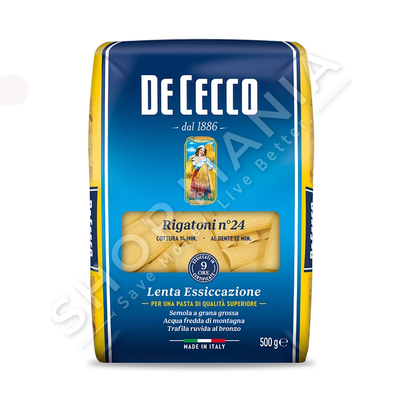 Pergatitur sipas metodes tradicionale De Decco, 125 vjecare. Lloj miellit: semolina 100%. Varieteti me i mire i miellit italian dhe atij amerikan, pa
