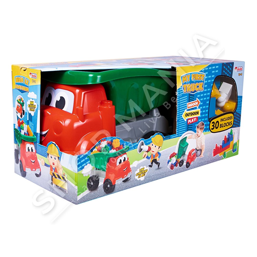 Femijet do ta adhurojne kamionin e buzeqeshur se bashku me 30 blloqet shumengjyreshe me te cilat mund te ndertojne forma te ndryshme, t'i renditin dhe t'i numerojne.