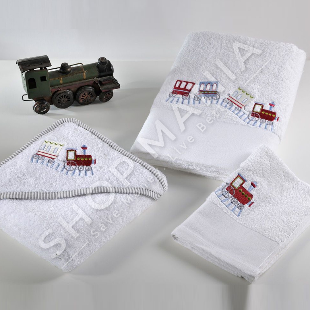 DOWN TOWN HOME - SET ME 2 PESHQIRE "TRAINS GREY DES.118" - 30X50+70X140cm