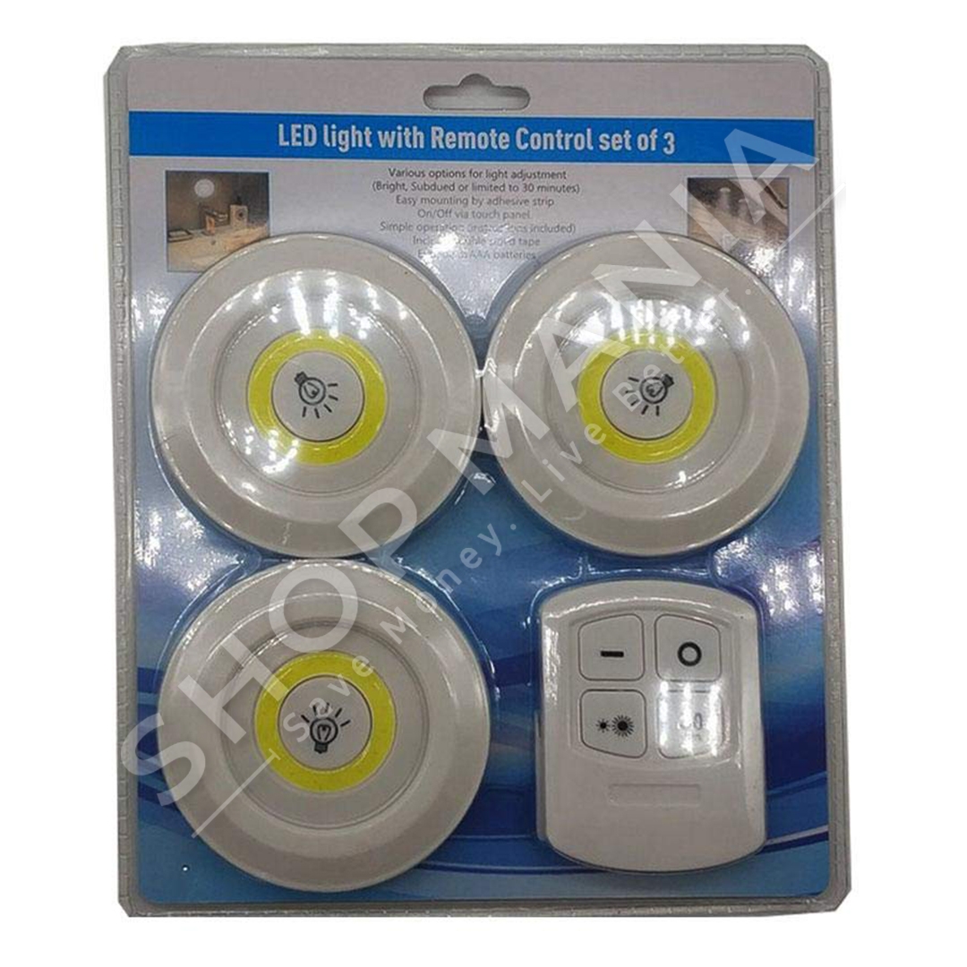 Drita LED ne paketim ekonomik me 3 llamba dhe nje telekomande. Me 3 opsione ndricimi. Te lehta per t'u montuar per shkak te shiritave ngjites te cilet pershtaten ne cdo siperfaqe (druri, plastike, metali, qelqi etj). Funksionojne pa tela dhe me bateri AAA. Me panel me prekje dhe buton ON/OFF. Pershtaten perfekt ne cdo ambient qe ka nevoje per drite (kuzhine, dhome gjumi, shkalle, bodrum etj).
