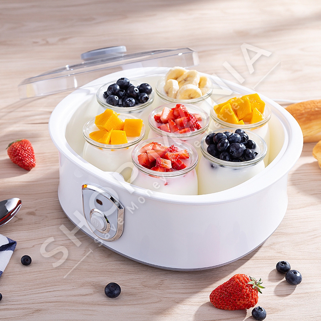 Ka nje kapacitet per 7 kavanoza qelqi per te pergatitur kos yogurt natyral dhe kos frutash.