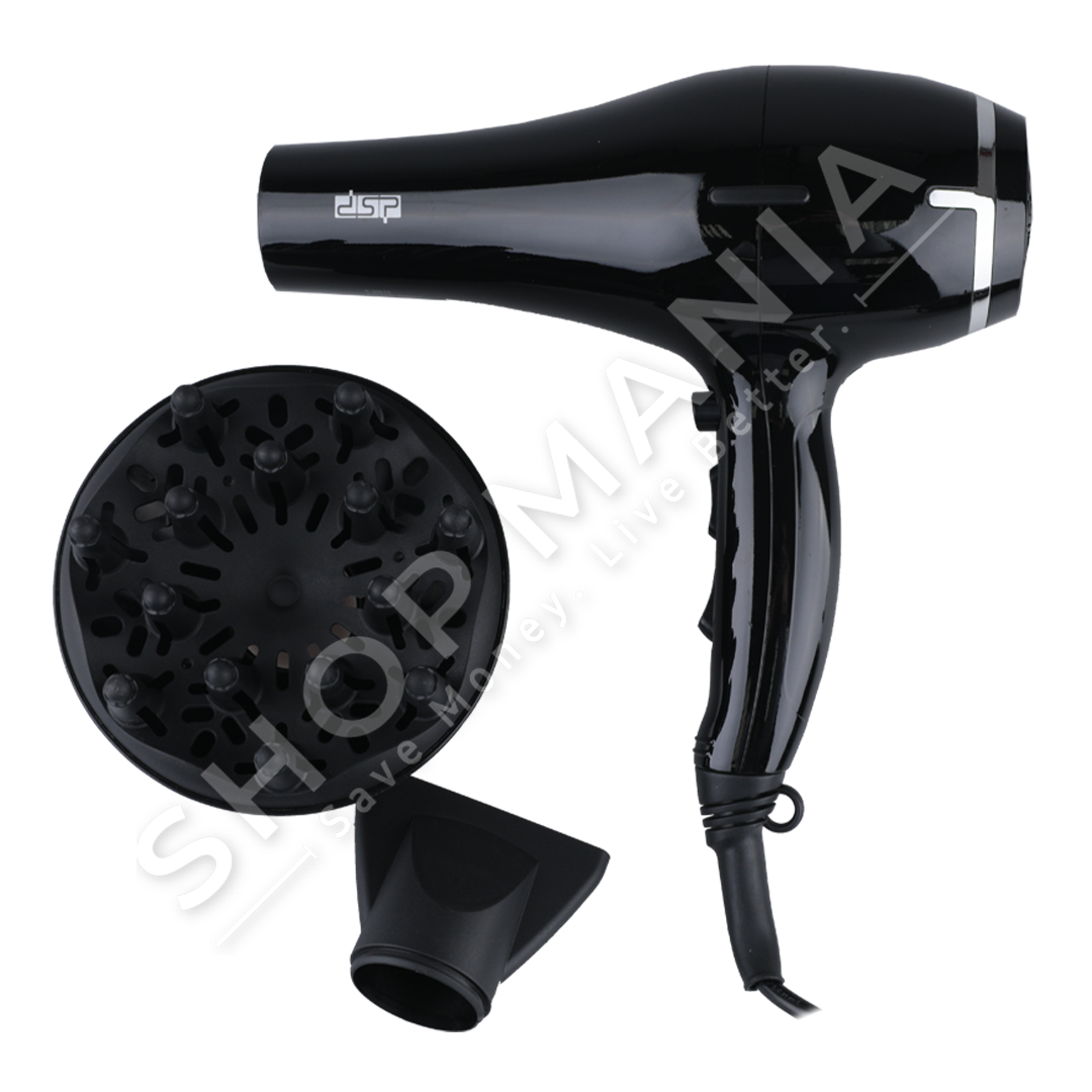 DSP Electric Hair Dryer 30075 gjithashtu ofron 3 nivele të ndryshme të temperatureve dhe 2 nivele të ndryshme të shpejtësisë për të siguruar se mund të përshtatet me llojin e flokëve dhe preferencat personale. Ky model gjithashtu ka një mbrojtje kundër mbinxehjes dhe aksesore shtesë, si koka dhe difuzori.