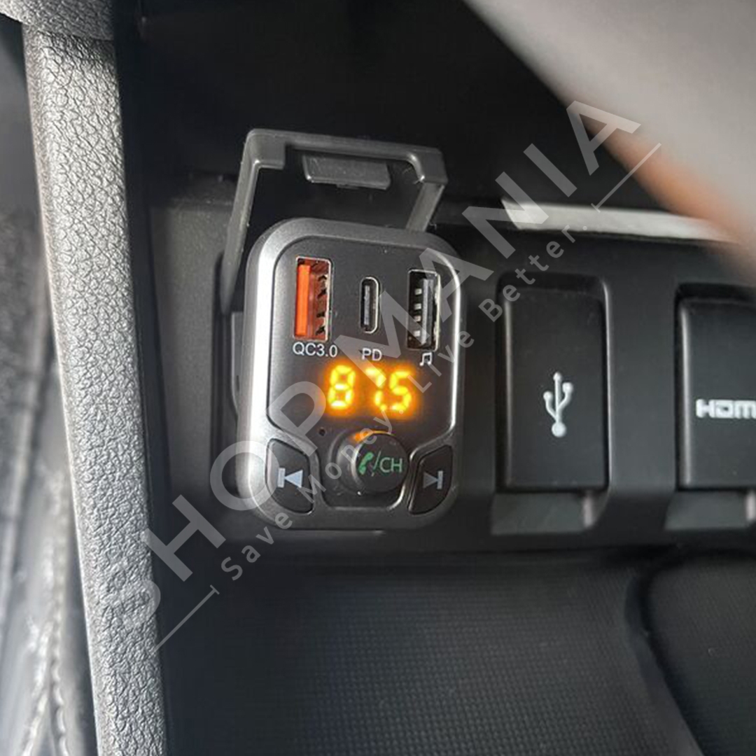 Karikues makine qe kryen tre funksione: perdoret si transmetues FM, MP3 si dhe te karikoni dy smartphone fale dy hyrjeve USB. Lidhet me smartphonin tuaj me Bluetooth dhe mund te vendosni muziken qe deshironi per ta degjuar ne makinen tuaj. Lidhet gjithashtu me smartphonin dhe qe mund te kryeni telefonata ose te merrni telefonata.