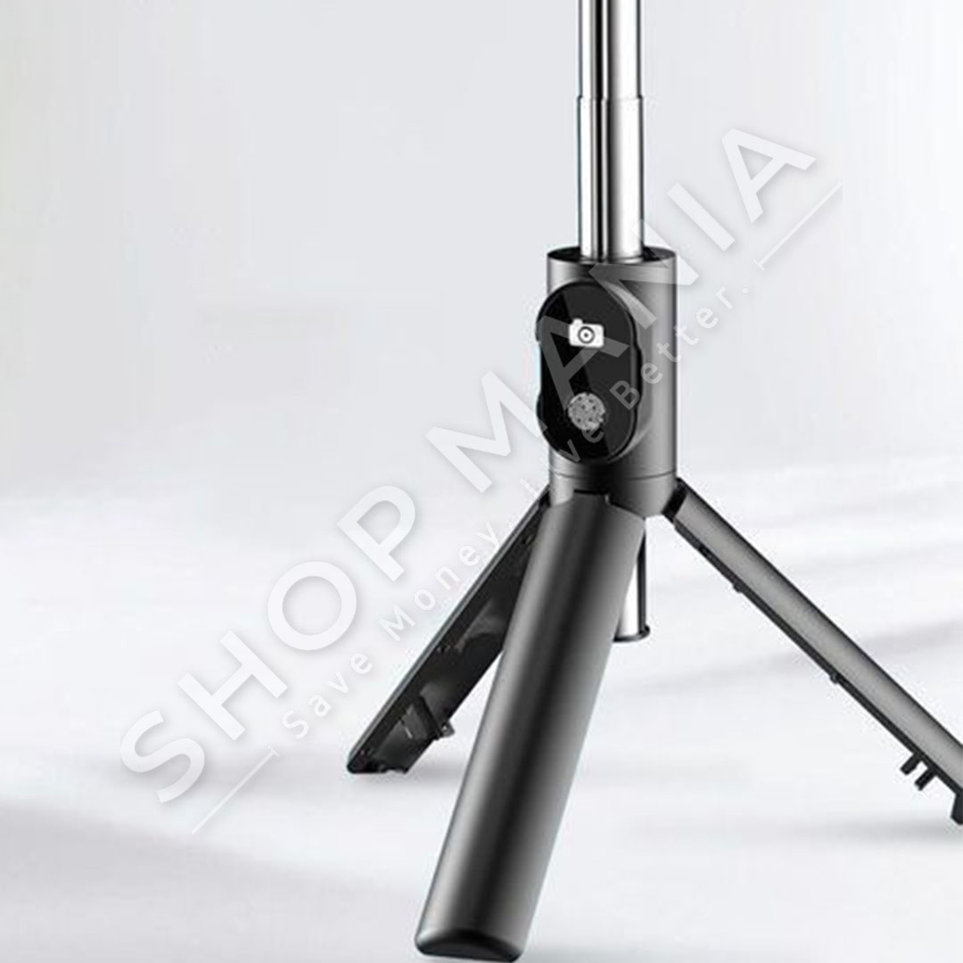 Tripod dhe Selfie Stick ne nje pajisje te vetme mundeson lidhje me telefonin me ane te Bluetooth-it. Ka nje baze te qendrueshme me kembeza qe hapen dhe mund te vendosen mbi nje siperfaqe te sheshte per te bere foto perfekte. Mund te paloset lehtesisht dhe eshte portativ per t'u marre kudo me vete. Tripodi ka bateri te rikarikueshme dhe ofron 24 ore pune.