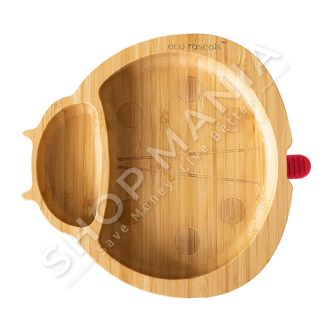 Përshkrimi: Per te gjithe femijet qe kane qejf buburrecat, ne sugjerojme pjaten me material bambuje ne forme buburreci me baze silikoni te shkeputshme ngjyre te kuqe.