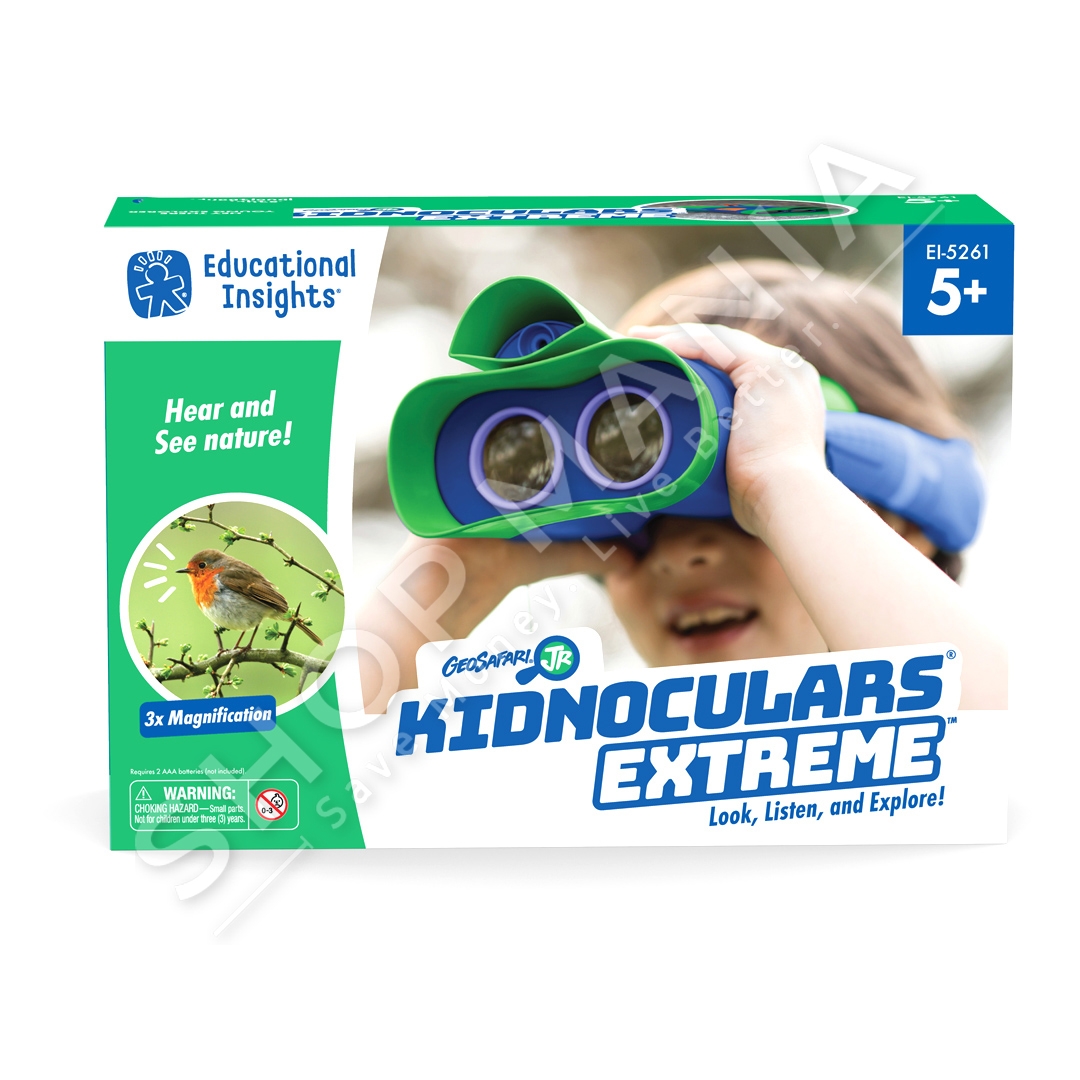 GeoSafari Jr. Kidnoculars Extreme jane dylbi per femije mbi 5 vjec. Keto dylbi te mundesojne te shikoni 3 here me te zmadhuar objektet qe jane larg. Jane te pajisura gjithashtu me nje mikrofon te integruar, me ane te te cilit mund te degjoni cdo tingull. Punojne me bateri 2 AAA, qe nuk perfshihen ne paketim. Mosha: +5 vjec