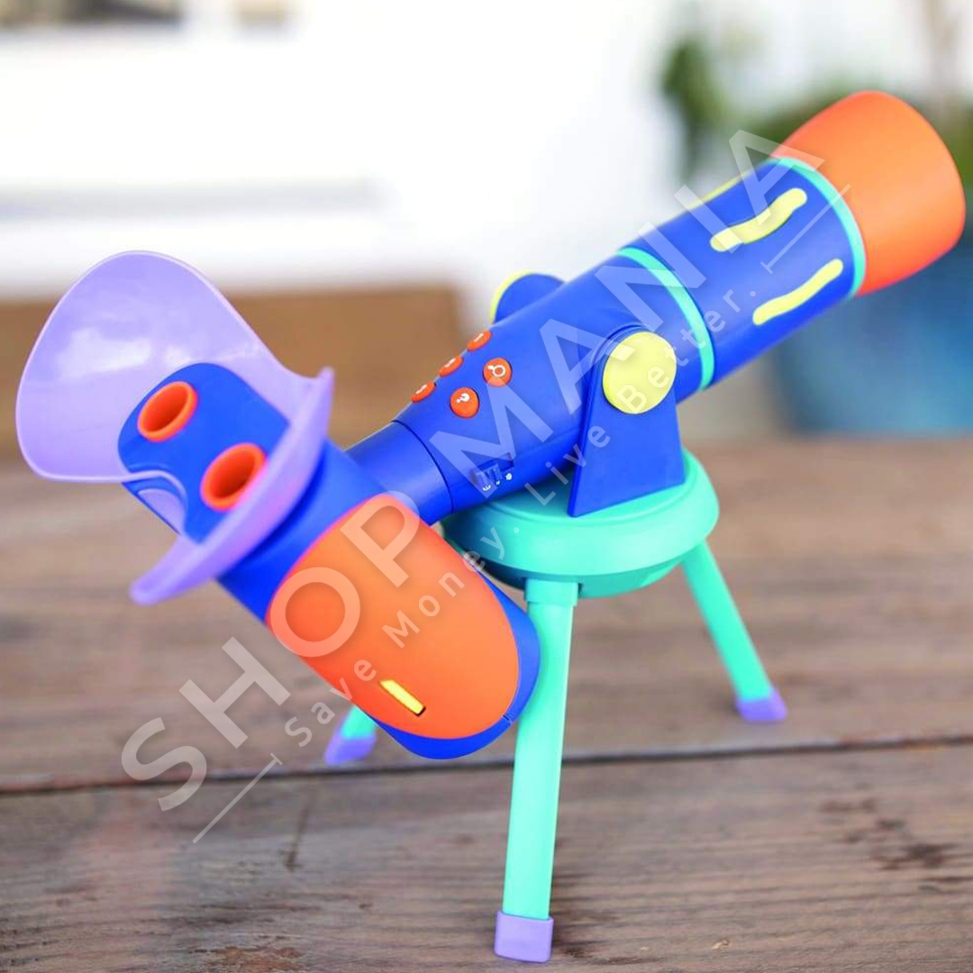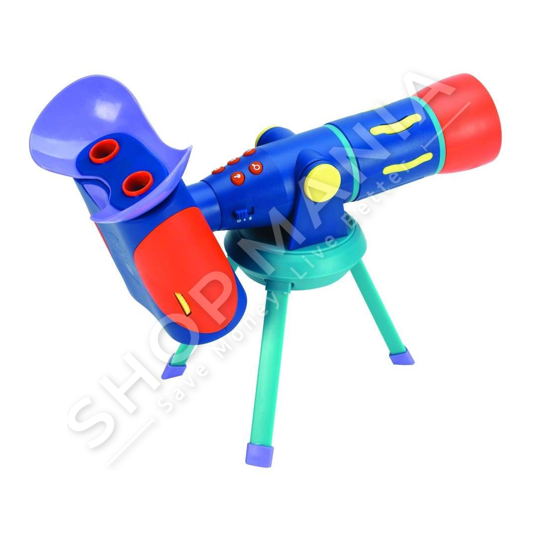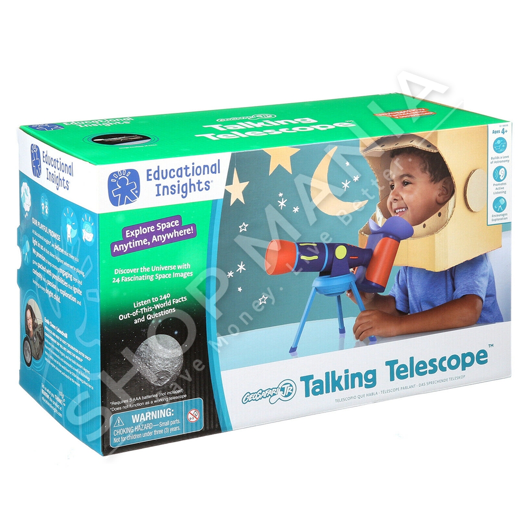GeoSafari Jr. Talking Telescope eshte nje teleskop loder qe flet dhe u meson femijeve fakte argetuese ne lidhje me hapesiren. Femijet kane mundesi te eksplorojne sistemin diellor, te degjojne fakte interesante dhe te mesojne gjithcka rreth hapesires. Me ane te teleskopit mund te shikoni 24 imazhe te bukura hapesinore. Gjithashtu dhe mund te degjoni dhe mesoni 240 fakte argetuese dhe pyetje ne lidhje me hapesiren. Audioja perfshin 4 gjuhe: anglisht, spanjisht, frengjisht dhe gjermanisht. Teleskopi loder punon me 3 bateri AAA qe nuk perfshihen ne paketim. Mosha: +4 vjec