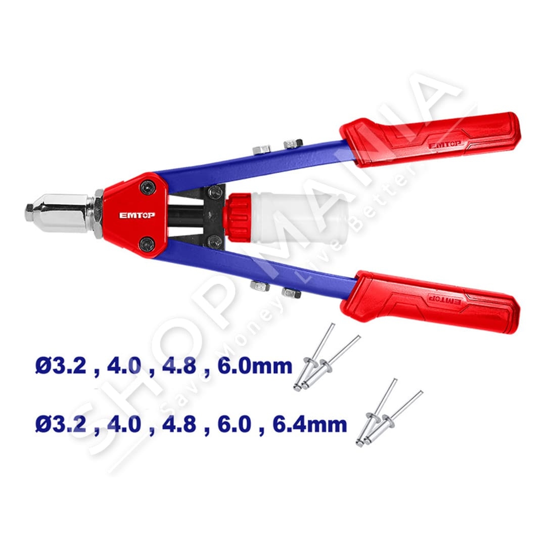 • Diametri i aplikueshem i percinave prej alumini dhe celiku: 3.2 mm, 4.0 mm, 4.8 mm, 6.0 mm, 6.4 mm