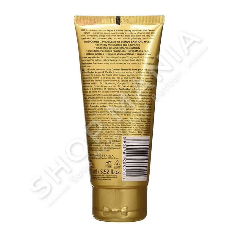 Krem duarsh i krijuar per te luftuar 7 problemet e duarve dhe thonjve. Lehteson menjehere lekuren e thate, aroma e ngrohte e vaniljes i siguron lekures momente qetesie dhe relaksi. Rigjeneron dhe ushqen intensivisht lekuren e duarve duke u rikthyer atyre nje pamje te bukur dhe terheqese. Zbut dhe rikthen elasticitetin e lekures. Forcon thonjte. Përbërja: