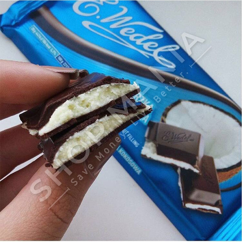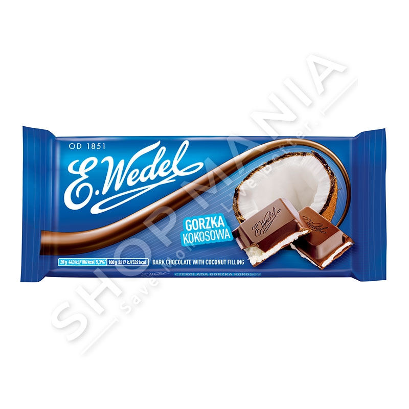 Cokollate e zeze e shijshme e mbushur me arre kokosi nga marka E.Wedel.Nje marke qe per dekada ka garantuar shije te jashtezakonshme dhe cilesi te larte.Shija dhe aroma unike ndihet per nje kohe te gjate ne qiellzen tuaj.Pesha: 100gr