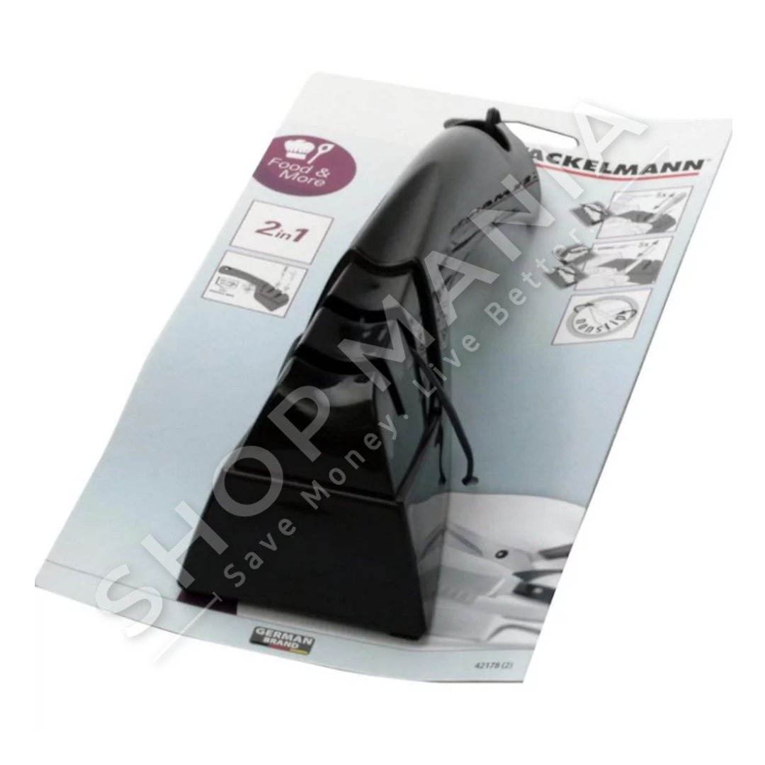 Përshkrimi:Mos i hidhni thikat, thjesht mprehini ato!SHOP MANIA sjell mprehesen e thikave me praktike "FACKELMANN SHARPENER AND SCISSOR WITH NON-SLIP RUBBER".Qe thika juaj te presi sa me mire, zgjidhni mprehesen e duhur!