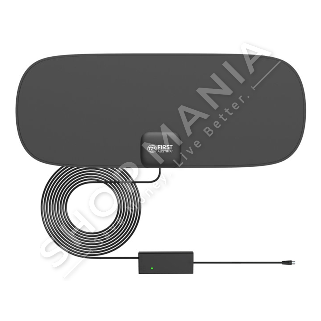 "First Austria FA-3101 Slim indoor TV antenna with amplifier and USB – 16 x 40 cm" eshte nje antene televizive per perdorim te brendshem me profil te holle per t'u montuar ne dritare.