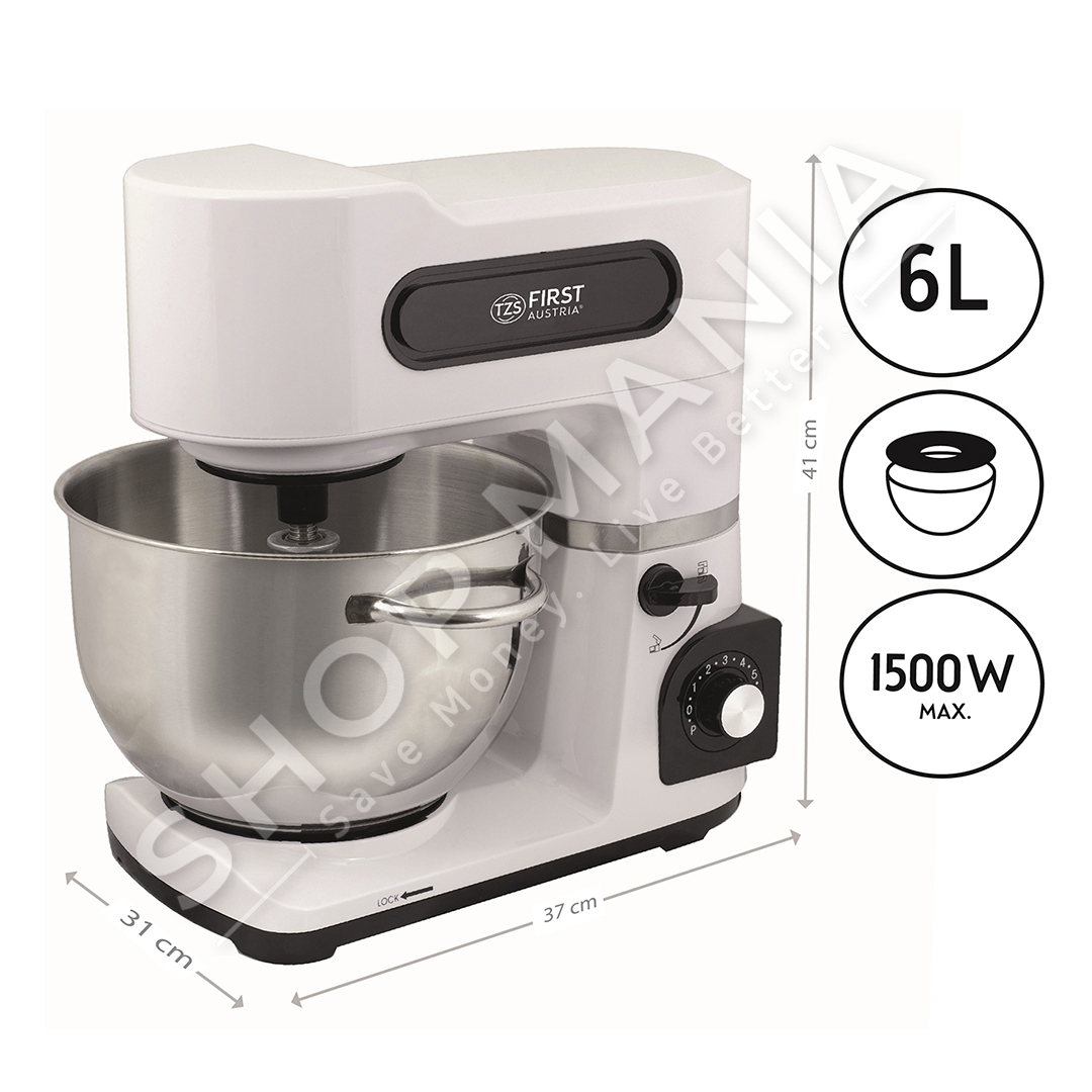 Gati per pergatitjen e cdo lloj brumi: Kombinati "First Austria FA-5259-4 Professional Food Processor Dough Mixer | 1500 W | 6 L " eshte perzieresi profesional i brumit.