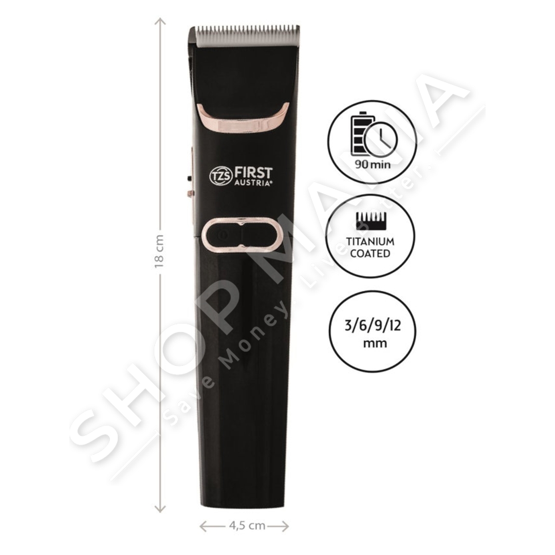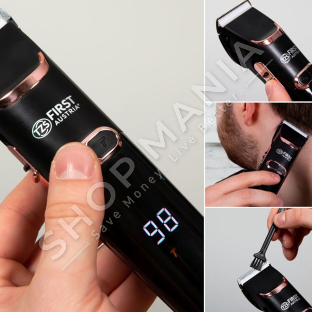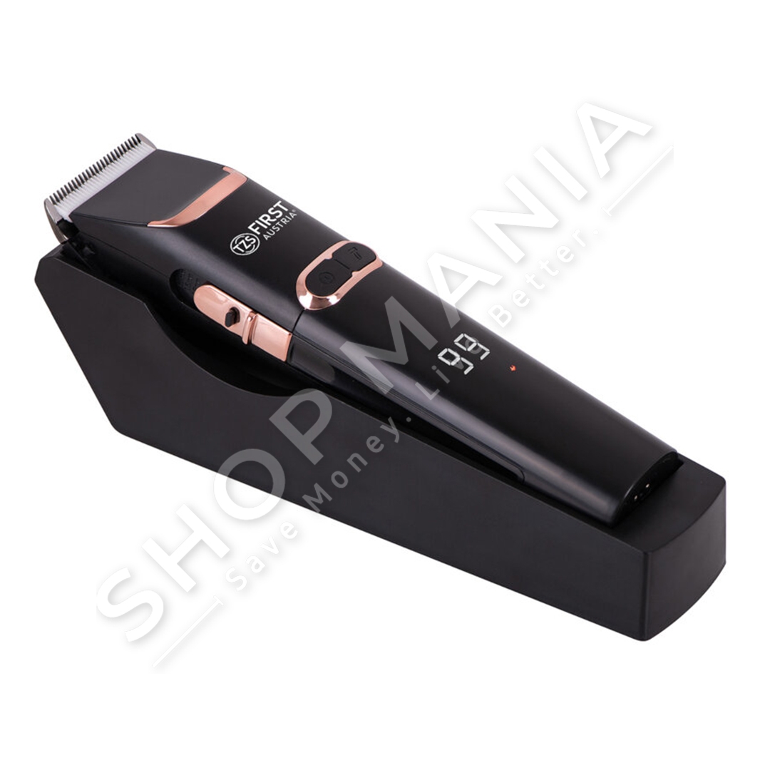 Makina qethese "First Austria FA-5676-7 Rechargeable hair clippers with display, 2 speeds and titanium / ceramic blades 3 W" eshte gjithmone gati per te percaktuar stilin tuaj te preferuar te qethjes.