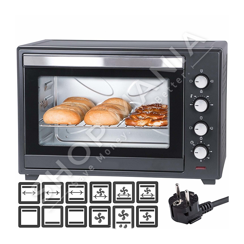 Furre elektrike multifunksionale me grill, drite dhe tel rrotullues prej celiku inoksi.
