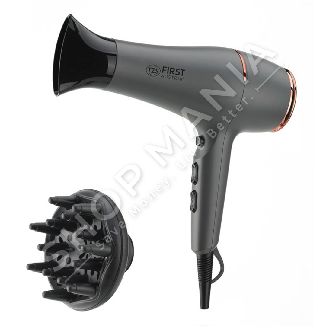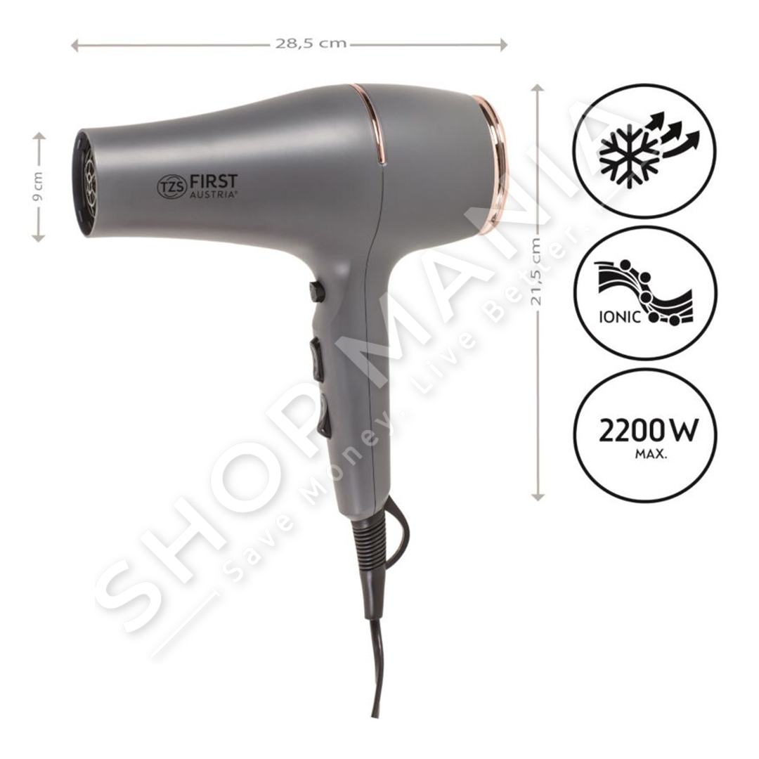 Tharese flokesh "First Austria FA-5654-7-GR Hair dryer with ionizer, 2 speeds and 3 temperature settings 2200 W".